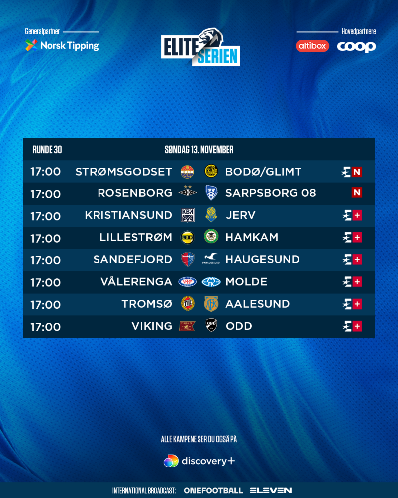 TV-kampene for runde 30 i Eliteserien