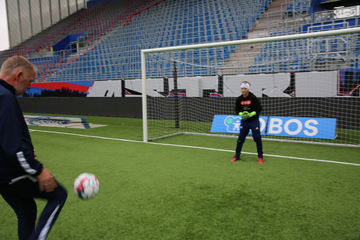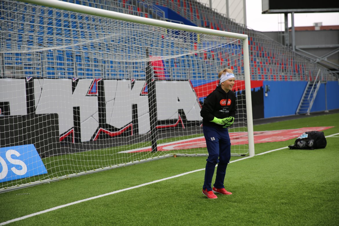 En hel dag med overraskelser var det som venter Ulrik. Vel nede på Intilty stadion får han bli med inn i garderoben og der møter de keepertrener Gjermund Østby. Han får nye keeperhansker og de tar en økt ute på matta.