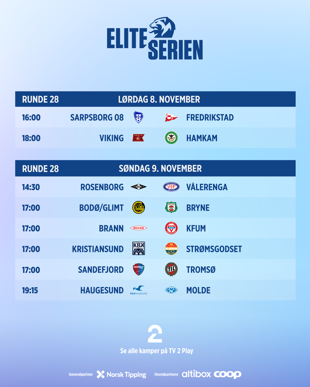 Runde 28 sparkes i gang med Østfold-derbyet mellom Sarpsborg 08 og Fredrikstad lørdag kl. 16:00!