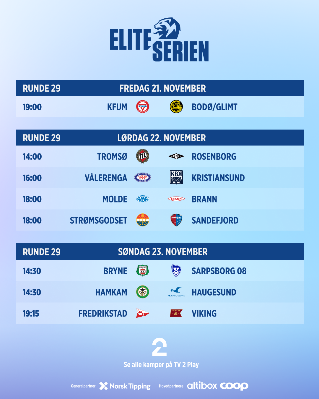 Runde 29 sparkes i gang fredag kl. 19:00 når KFUM får besøk av Bodø/Glimt!